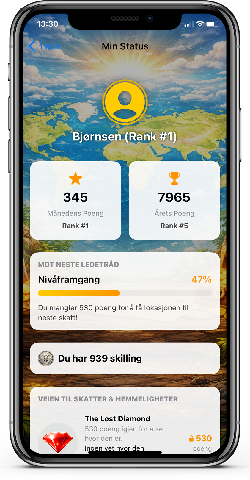 Samle poeng og konkurrer mot andre i sanntid. Hvem finner diamanten først?