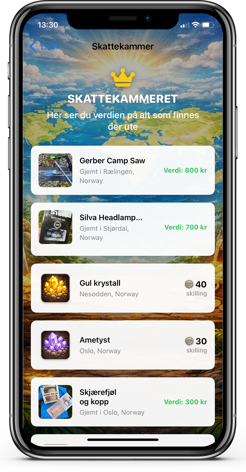 Bruk appen til å finne virtuelle diamanter skjult i den virkelige verden. Perfekt for å gjøre søndagsturen spennende.